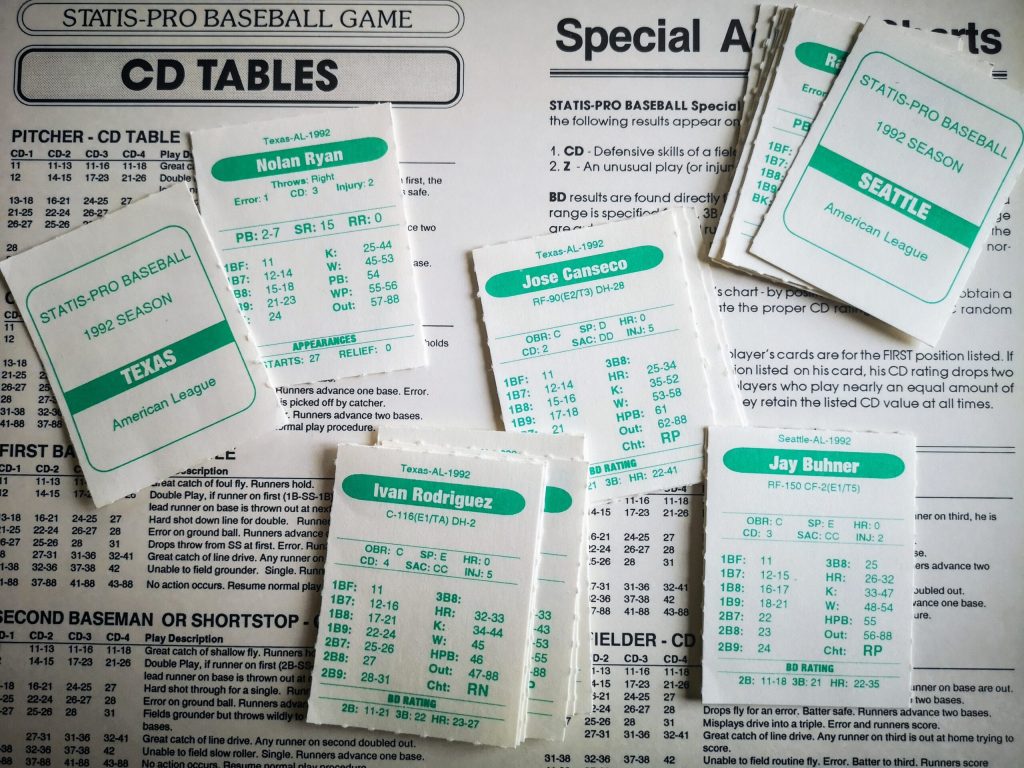 Hey all – just started a new project – a replay of the entire 1992 season using the original Statis Pro game and cards (the last official set, I believe).