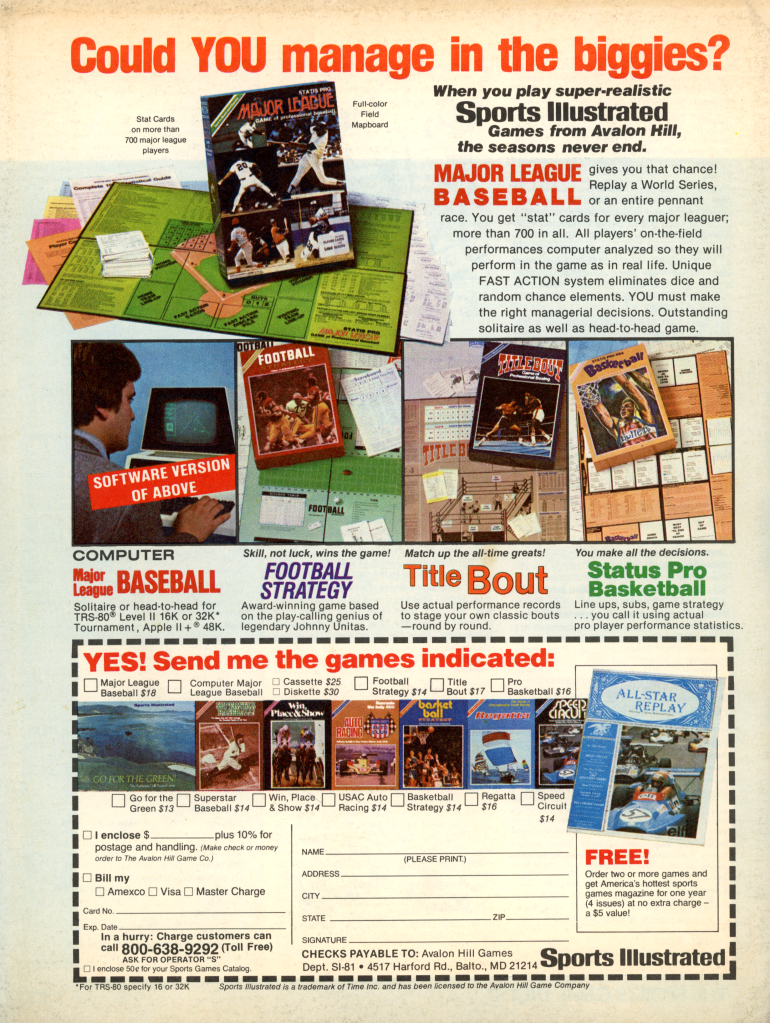 Recently I picked up a small collection of Avalon Hill’s excellent All-Star Replay magazine. This was published for several years to support the company’s line of Sports Illustrated games and is a treasure trove of experimental rules, and add-ons, many of which would later be integrated into future editions of each game.