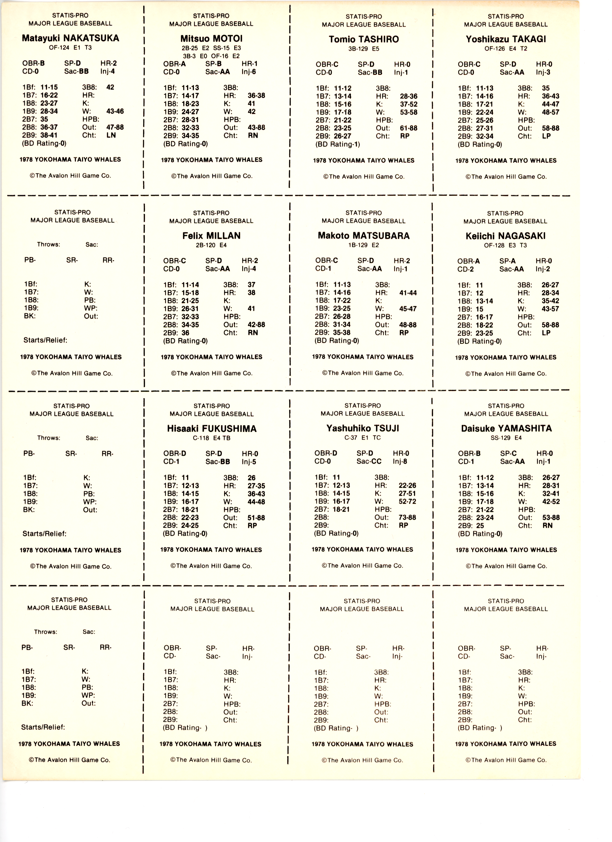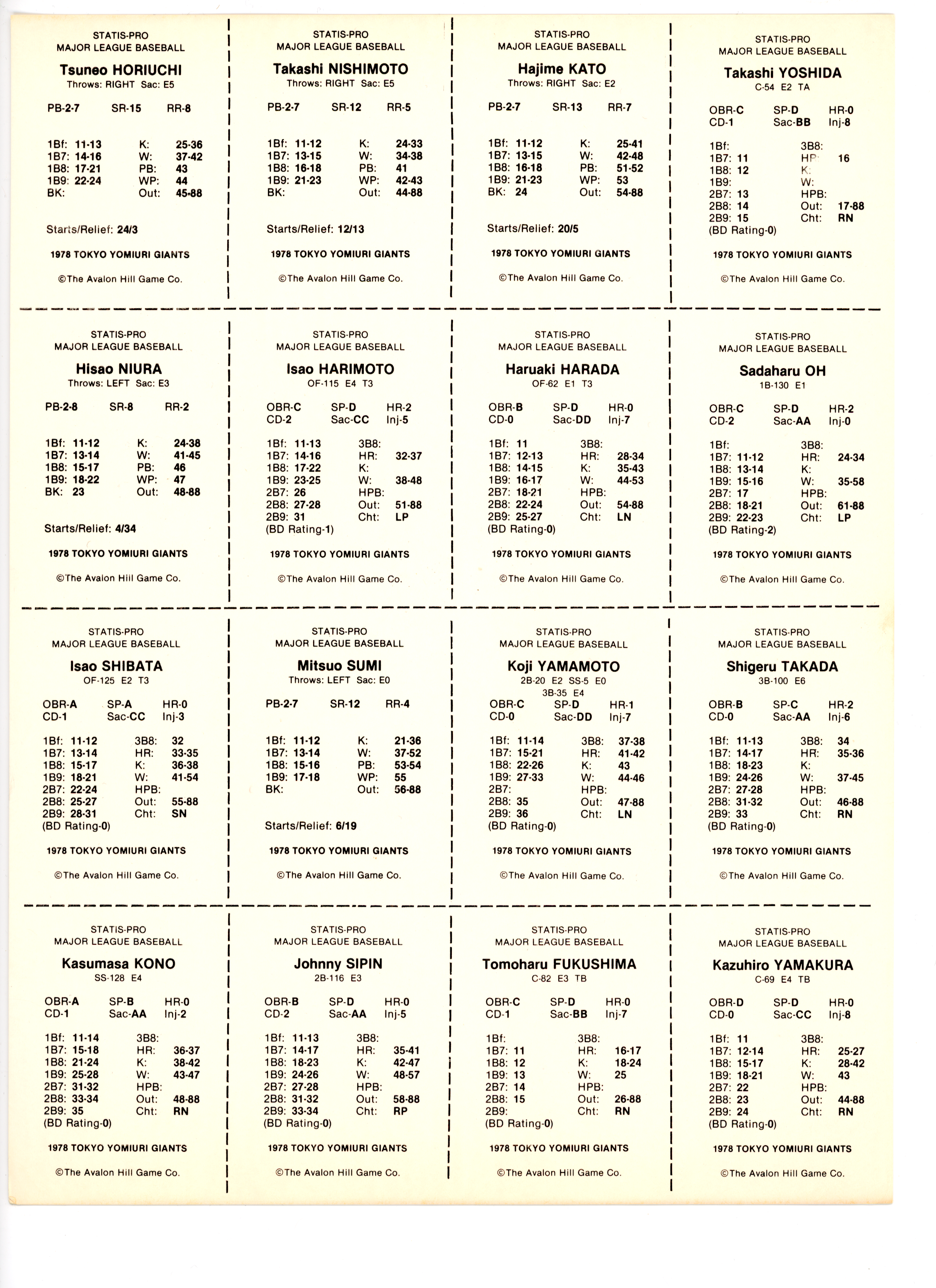 This issue – Vol 3. No. 2 – included Statis Pro baseball cards from the Japanese leagues. Two teams, Tokyo’s Yomiuri Giants and Yokohama’s Taiyo Whales, were provided with a full set of cards based on the 1978 version of the teams.